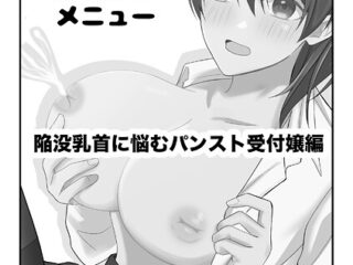 オフィスの人目につかないトイレの個室… お昼休みサクッとエッチなことをしてくれる秘密の日替わりメニューがあるという噂を聞きつけた主人公の溜村。 トイレのドアに書かれたメニューの内容に少々不安を抱きつつ、扉をノックすると、そこに座っていたのは受付嬢の乳山さんだった! パンスト越しにおまんこを触らせてもらい癒しを得たものの、メニューに書かれていた陥没乳首を…
